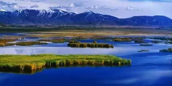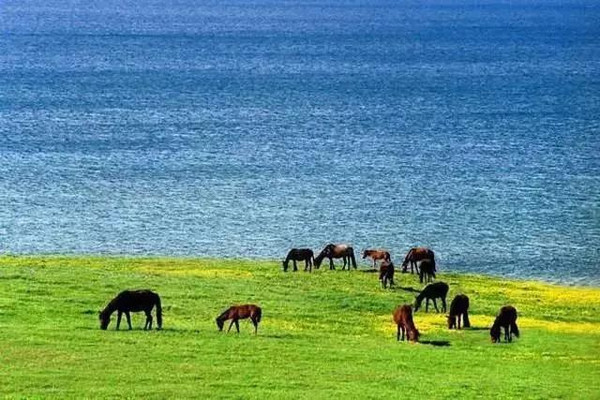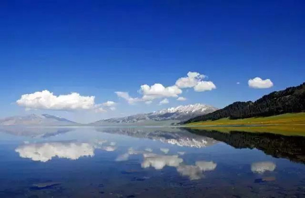 因是大西洋的暖湿气流最后眷顾的地方,所以赛里木湖被称作大西洋最后一滴眼泪。湖四周是倾斜低岸,水草丰美,为优良牧场。无大河注入湖内,流域内也少冰川和永久积雪,湖水主要来源为雨水补给和地下水。每年冬季,这里雪涌水凝,略呈椭圆形的湖面镶在冰山雪原之中,宛若洁白松软的丝绵上搁置着一块碧绿的翡翠。到了夏季,湖畔林茂涧清,草茂花繁,辽阔的草原上,幕帐点点,炊烟袅袅,牛羊成群,牧马奔驰,构成了一幅动人的牧场风景画。
