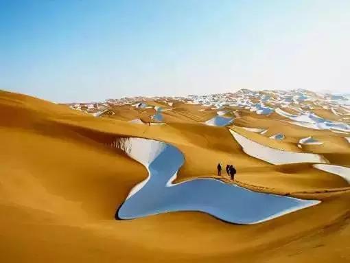 盛夏之日,沙漠处处热浪袭人,仿佛燃烧着熊熊火焰。一到这里,游人会感到酷热,瞬间就会大汗淋漓、热气绕身,给人以置身桑拿室般的感受。但是,在沙漠的北缘,又有一条清澈明净的小河,潺潺流水,傍依沙山蜿蜒西去。在小河两旁,随处可见的柳树、杨树挺拔伫立,盘根错节,状如盘龙。如果置身这片葱绿之中,听流水淙淙,任凉风吹拂,顿时又令人倍感凉爽。