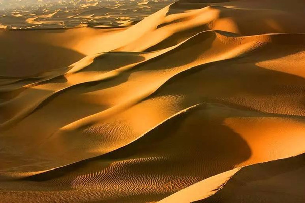 塔克拉玛干沙漠位于中国新疆的塔里木盆地中央,整个沙漠东西长约1000公里,这里,金字塔形的沙丘屹立于平原以上300米,狂风能将沙墙吹起,高度可达其3倍。乘车于沙漠公路犹如荡舟大洋,苍茫天穹下是一望无际的黄沙,缥缈间带给人们一种震撼的力量,令面对此景的人们都感慨人生得失无偿,站在红白山上看和田河两岸的泛着浓厚金黄的胡杨林,是一辈子不能忘怀的。