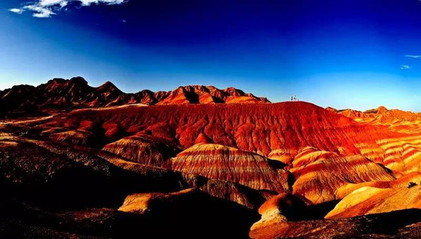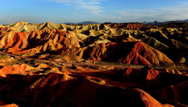 张掖的丹霞地貌,如用文字来表达,仅有两个字震撼。其气势之磅礴、场面之壮观、造型之奇特、色彩之斑斓,大自然的鬼斧神工,令人惊叹。她不仅具有一般丹霞的奇、险,而且更美的在于色。在方圆10多平方公里的范围内,随处可见有红、黄、橙、绿、白、青灰、灰黑、灰白等多种鲜艳的色彩,把无数沟 、山丘装点得绚丽多姿。张掖丹霞地貌以她那层理交错的线条、色彩斑斓的色调、灿烂夺目的壮美画图,形一个彩色童话世界。