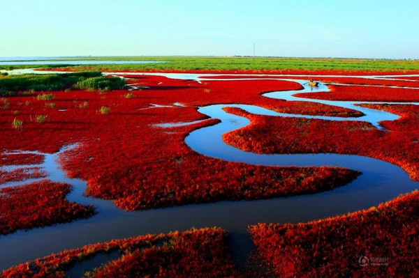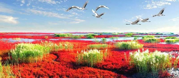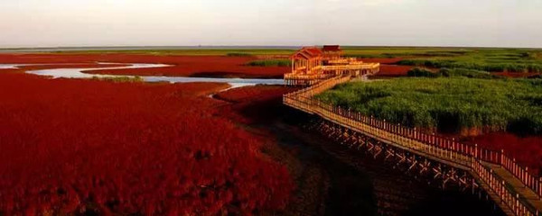 盘锦红海滩,位于辽河三角洲的盘锦市,有一处著名的国家级自然保护区--红海滩。坐落在赵圈河乡100平方公里的苇田湿地内,它以全球保护最好、规模最大的湿地资源为依托,以举世罕见的红海滩、是一处自然环境与人文景观完美结合的纯绿色生态旅游景区。9月份的红海滩就像仙境一般,置身其中,涤荡身心。